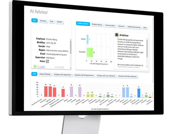 Equalearning的人工智能顾问面板和定制的动机商数(Motivation Quotient)报告易于阅读和理解,让您对了解您的人员充满信心。