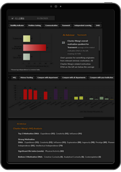 Equalearning的动机商数利用人工智能和大数据快速准确地绘制出您的内在动机。